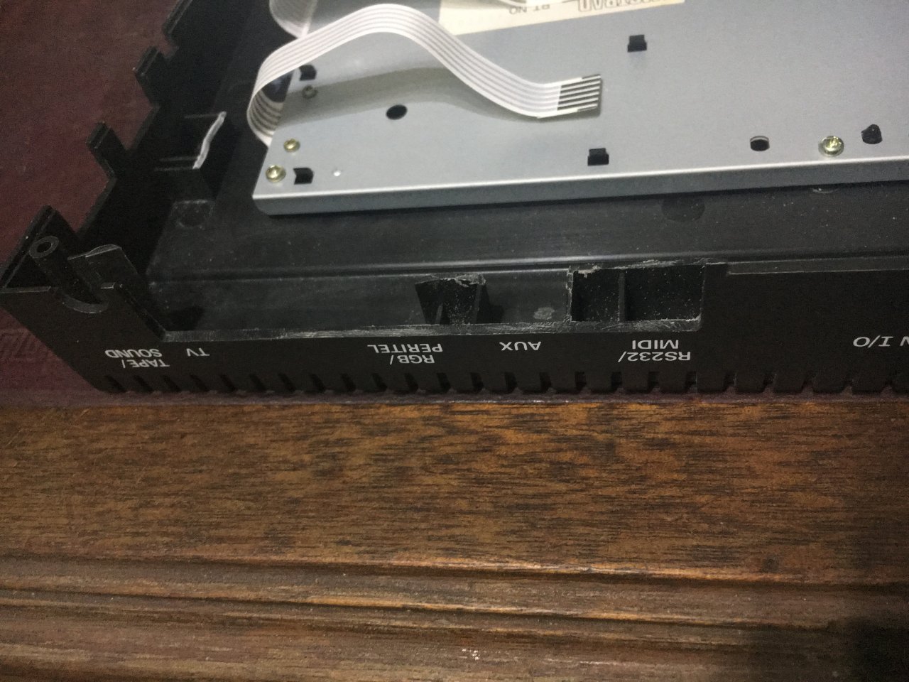 The back of the case needs to be cut out with a Dremel and then filed down to create a 113mm x 20mm space. This will cover the area currently occupied by the RS232, Aux, RGB, and TV connectors: